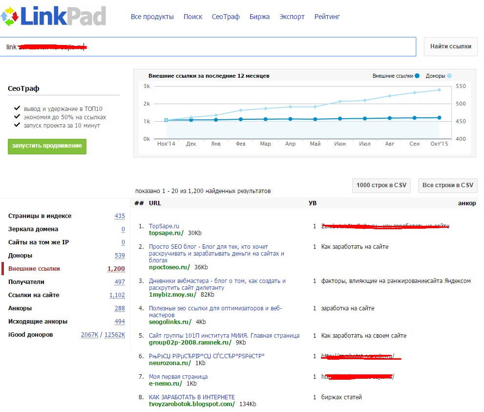 После ввода в строку для анализа сайта у Вас появляется куча полезной информации по ссылкам на сайт: