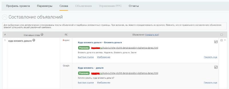 • автоматизированы все процессы — от подбора ключевых фраз до составления объявлений и управления ставками;