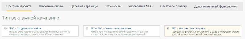 1. Выбираете в профиле проекта модуль «SEO» или «SEO+PPC»;
