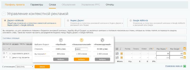 4. Назначаете бюджет для каждого слова;