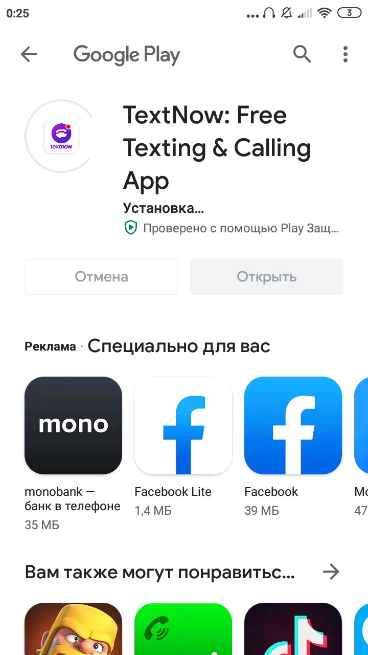 2.Качаем приложение TextNow(вы можете не найти его,вот вам ссылка и желательно включать впн)