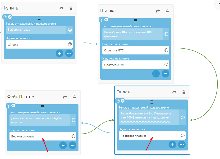 Таким необычным способом мы и получаем денежки. Даже после того, как человек оплатил и нажал кнопку "Проверка платежа", то его всё равно перекинет на "Фейк Платеж".
