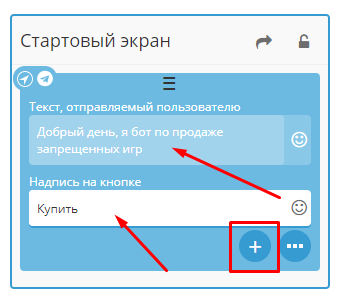 13) У нас появилась красная табличка, нам нужно, чтобы она горела голубым цветом. Для этого нам нужно заполнить все пропуски. Я добавил текст и добавил кнопку, кнопку назвал "Купить". Чтобы добавить кнопки нужно нажать на (+).