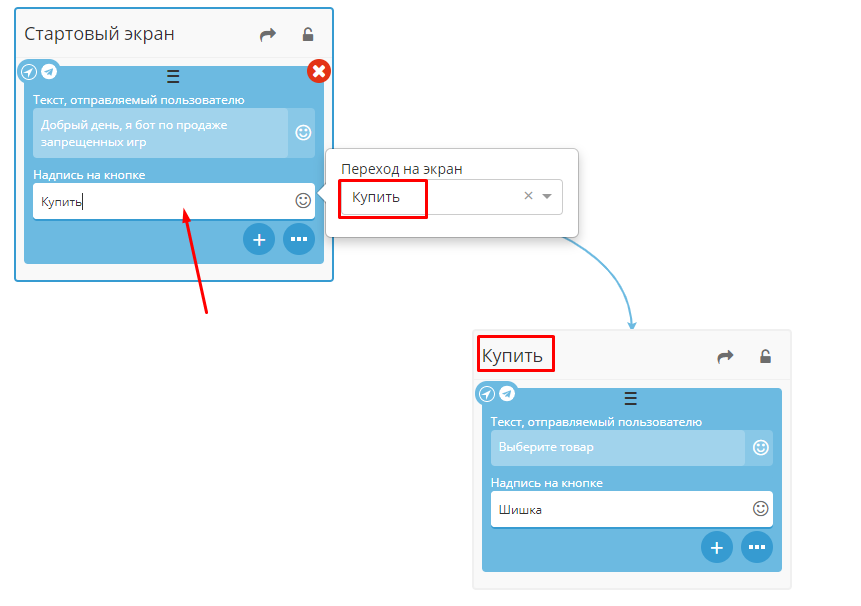 Если вы сделали всё правильно, то у вас появится стрелочка, что переход на данное окно - возможно.
