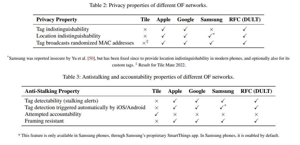 «Все производители, кроме Tile, давно внедрили алгоритмы защиты от преследования, которые гарантируют обнаружение трекеров на уровне операционной системы, обеспечивая постоянный запуск сканирования в фоновом режиме и автоматическое оповещение пользователя, — говорят исследователи. — Полагаясь на ручное, инициируемое пользователем сканирование, Tile создает опасные пробелы в обнаружении».
