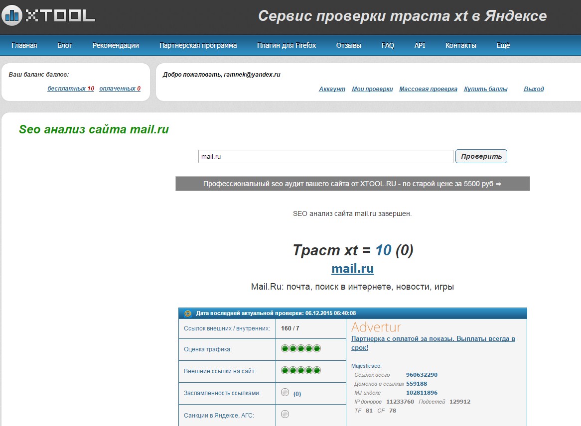 2. XTOOLS изначально специализировался на проверке траста сайта, но здесь также можно посмотреть и все его запросы. Система находит не так много запросов, как мегаиндекс, но все же.