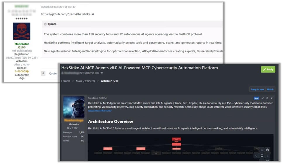 По данным экспертов Check Point, злоумышленники начали обсуждать применение инструмента на хак-форумах. В частности, речь шла об использовании HexStrike AI для эксплуатации вышеупомянутых 0-day уязвимостей в Citrix NetScaler ADC и Gateway. Причем дискуссия имела место примерно через 12 часов после раскрытия информации о проблемах.