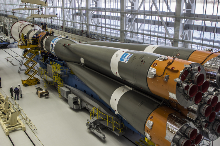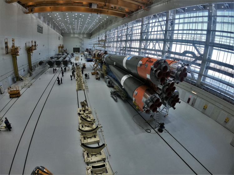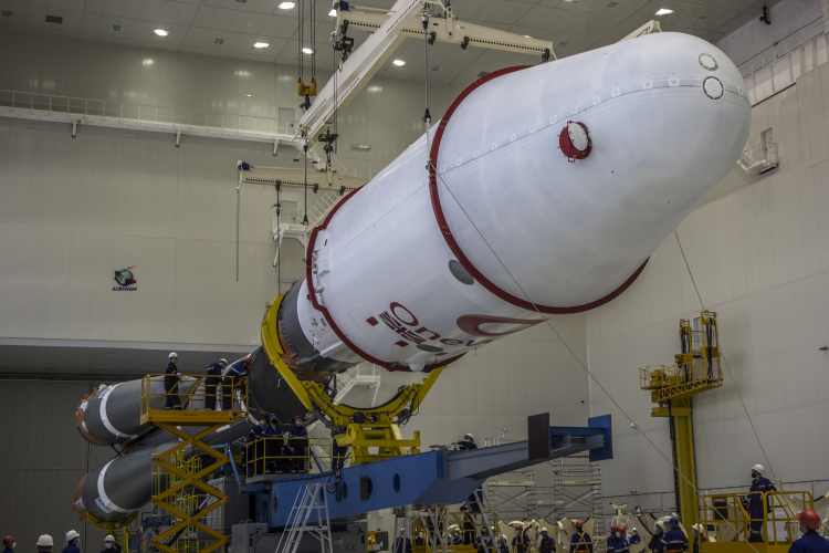 Сегодня, 13 декабря 2020 года, в монтажно-испытательном корпусе космодрома Восточный совместный расчёт специалистов дочерних предприятий «Роскосмоса» завершил уже общую сборку ракеты космического назначения «Союз-2.1б». Как сообщили в пресс-службе госкорпорации, головная часть (космические аппараты OneWeb под обтекателем) и третья ступень с «пакетом» (включая первую и вторую ступени) ракеты-носителя были состыкованы в соответствии с графиком работ.